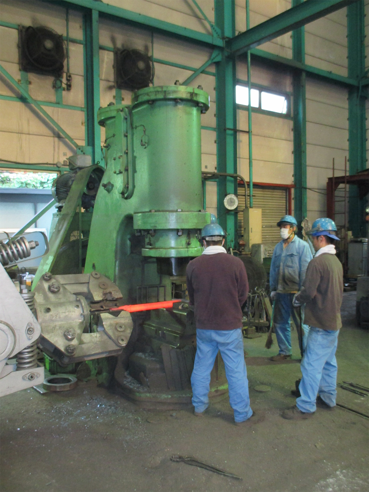 特に刀鍛冶は有名で金属を炉で加熱し、真っ赤に焼いたものを叩いて刀の形を造っていく。これを近代化させた仕事が現在の自由鍛造業です。